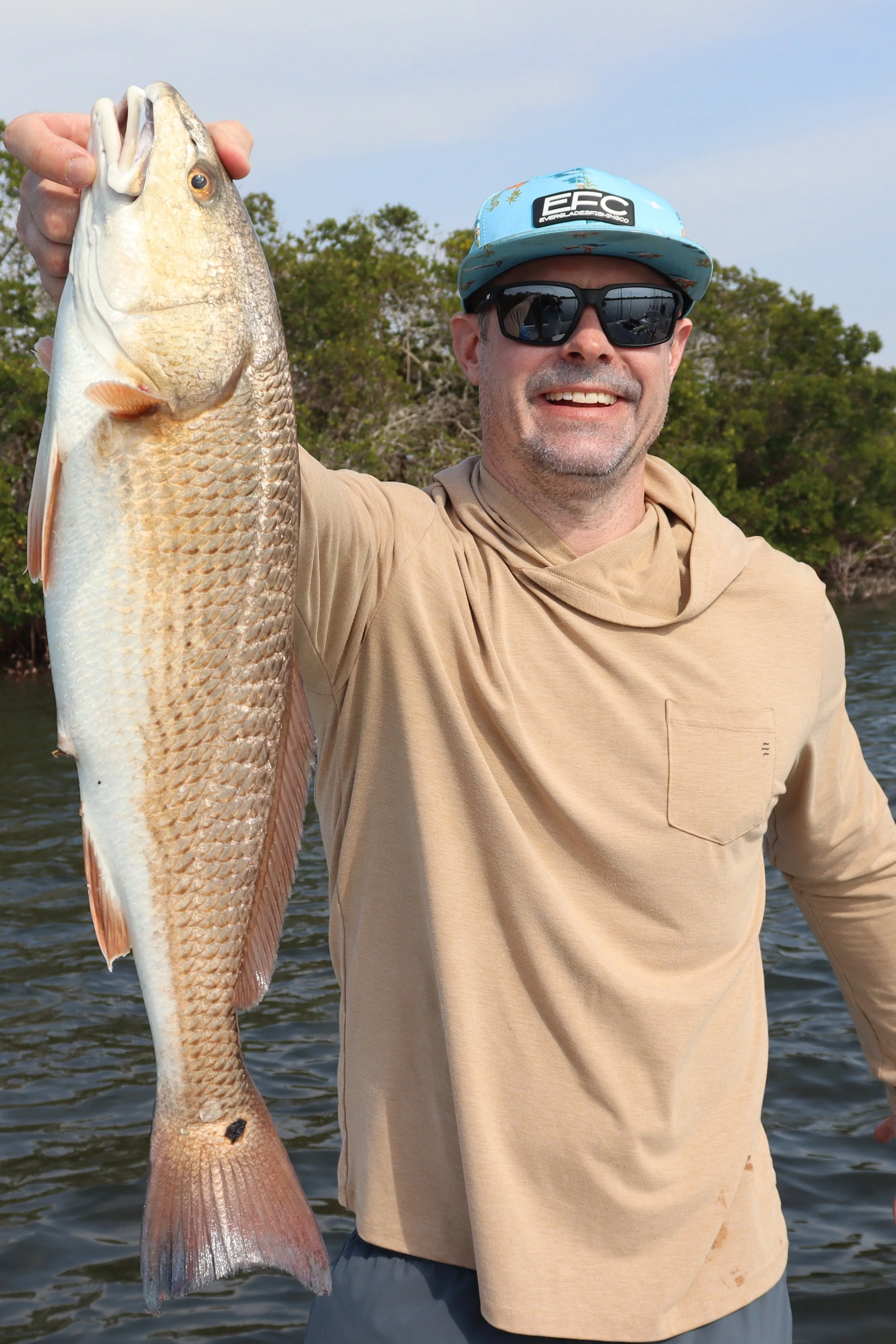 We did not go home fishless though. I caught what I’m certain is my biggest speckled trout to date which went into the cooler for supper that night. Back in a small inlet on one of the islands I watched as a shadow exploded from underneath the overhanging mangrove limbs. Before I could react my line was tight and a massive redfish threw himself into the mix. Only wanting to keep enough for a fish fry that night, we caught a few more snook and wrapped up our day.