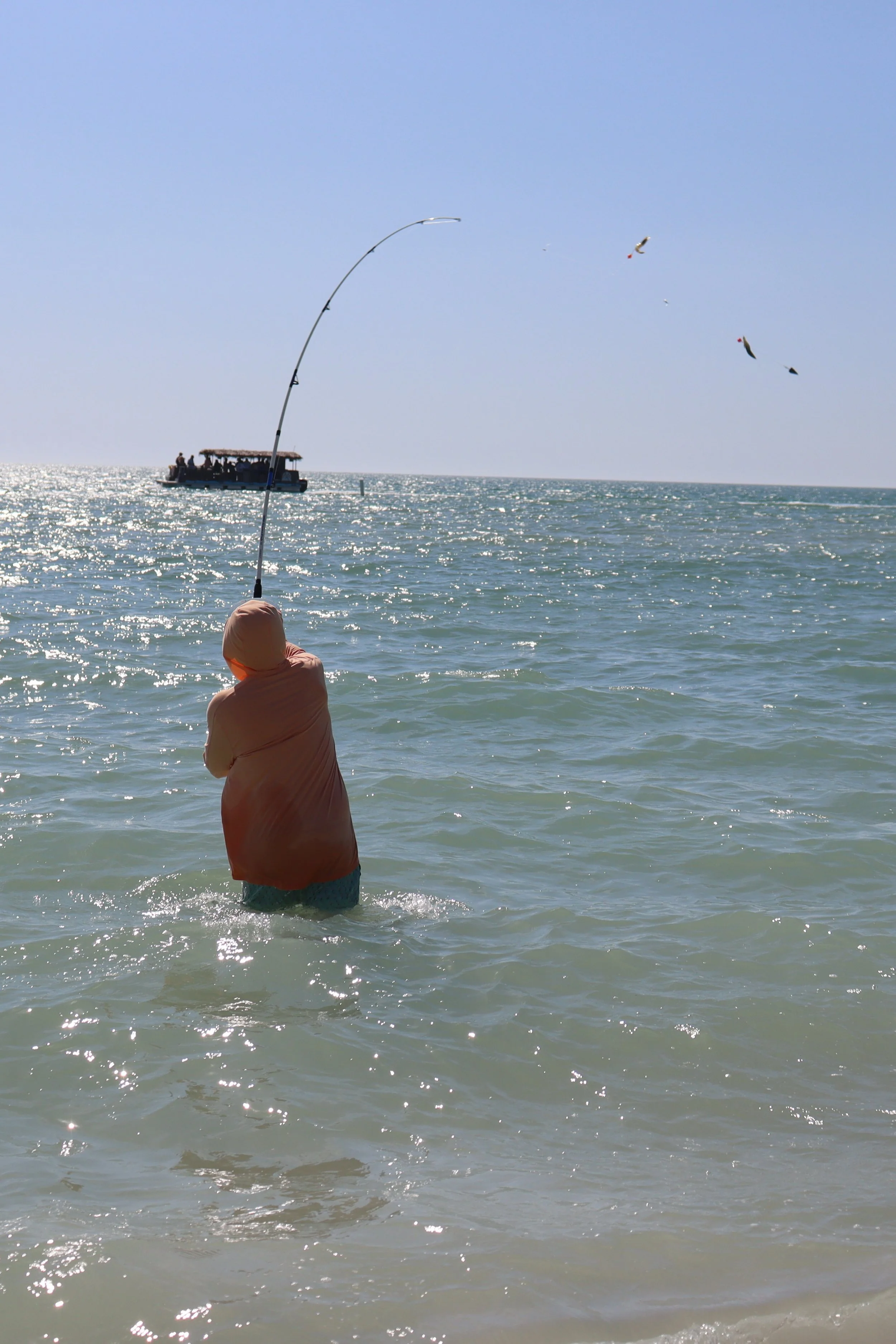 The other aspect of this trip was the surf fishing. Staying within 100 yards of the beach I had packed a couple of poles to keep us occupied while the ladies relaxed in the sun. The last couple years fishing from the beach has been almost as enjoyable as our charters. The rigs are fairly simple and fresh or frozen shrimp are the choice bait. This particular stretch of beach along Anna Maria Island gave us our biggest variety of fish to date.