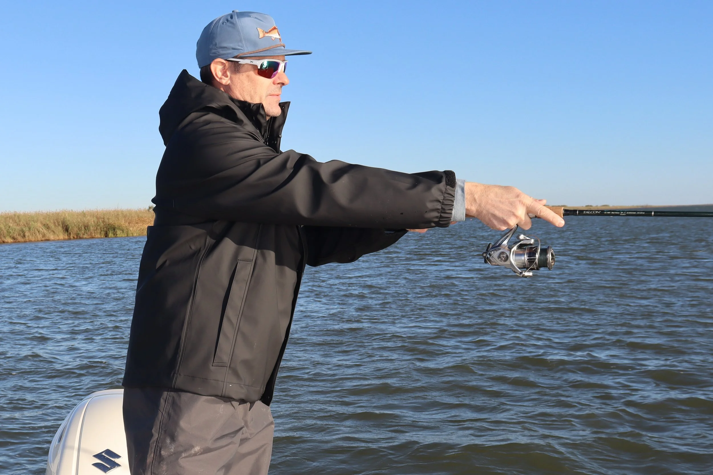The Neptune Jacket, made from polyurethane coated polyester fabric, was the easy choice. Fully waterproof with welded seams and a button down zipper flap, I had no worries should a rogue wave douse the boat or a steady drizzle set in for the day. I was able to layer underneath but still cast without restriction. I wore the Neptune Jacket extensively when cruising due to its ability to block wind.