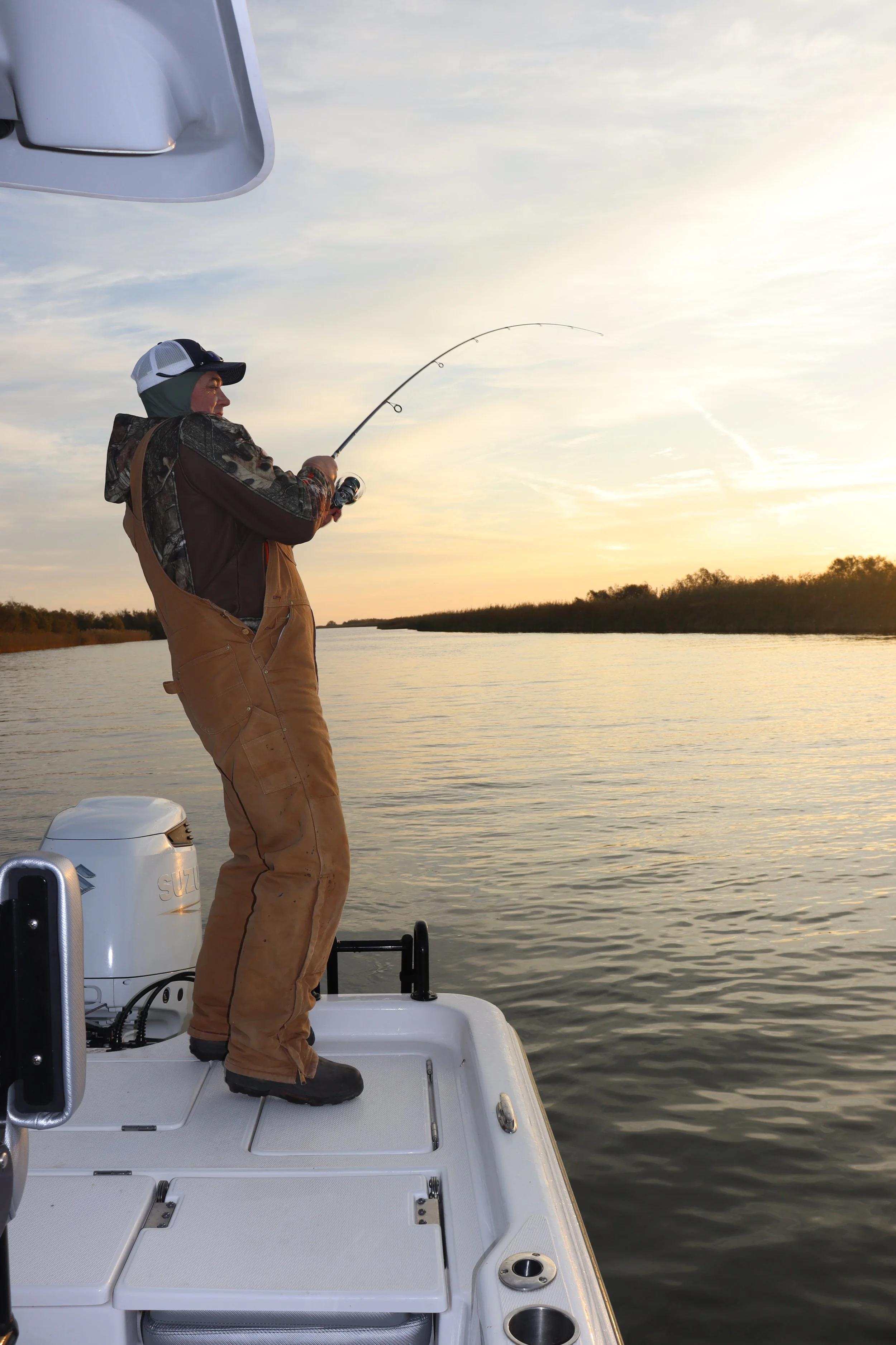 A few casts in the predawn darkness came up empty but as soon as the sun poked over the marsh grass, it was fish after fish. By 7:30 AM we had our 45 fish limit. Since only a few redfish had been hooked and we had the entire day ahead of us, the red drum would be our target for the remainder of the outing. Hitting cut after cut, we mostly came up empty. That was until Tim’s brother who was also out fishing that morning, texted us that he had found some reds. He wasn’t far and as we came around the bend they caught three while we approached.